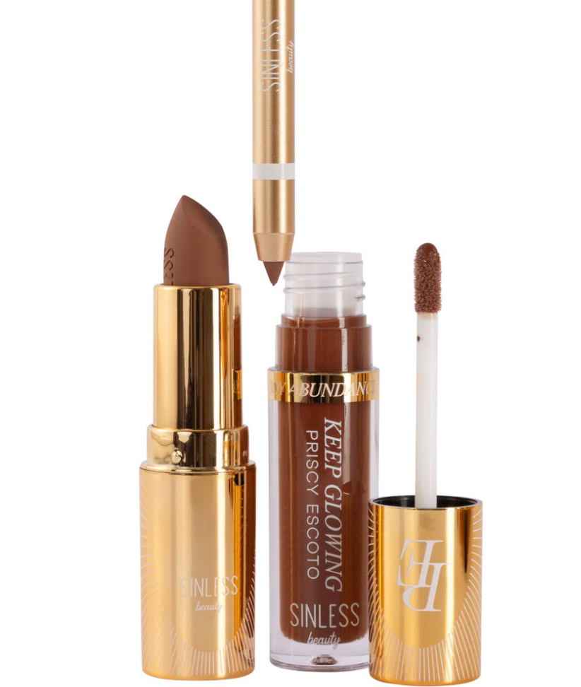 Descubre los Lip Kit de Priscy Escoto x Sinless Beauty, creados para resaltar tu esencia y hacerte sentir poderosa todos los días. Este set incluye tres productos imprescindibles para labios: un delineador cremoso que define con precisión, un labial de textura suave y pigmentación intensa, y un gloss con color que aporta el toque final de volumen y frescura.